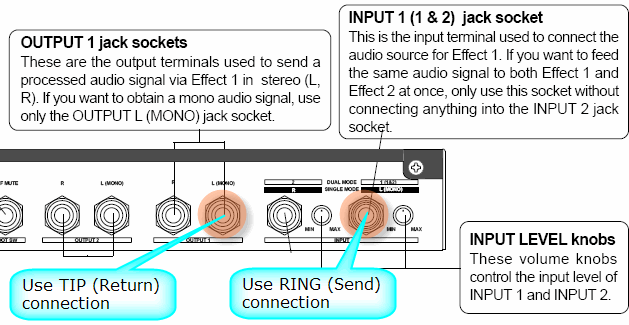 Note - If you want to use two effects channels with the DE-1 you will need an INSERT cable for each Bose Channel you want to run through your effects unit. (up to 2 max).