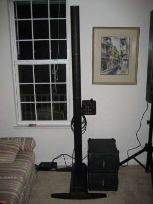 I set up both the Bose L1 (Model 2 with T1 ToneMatch Engine and 2 B1s (subs) ) in our living room. The room is 14' x 16' 4" and I set up against the longer wall, right in the middle of the room.