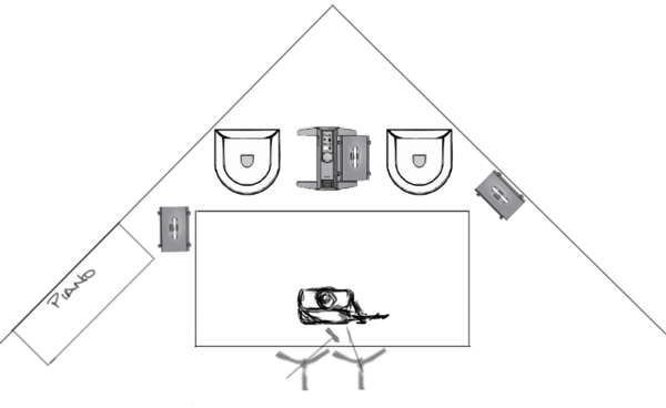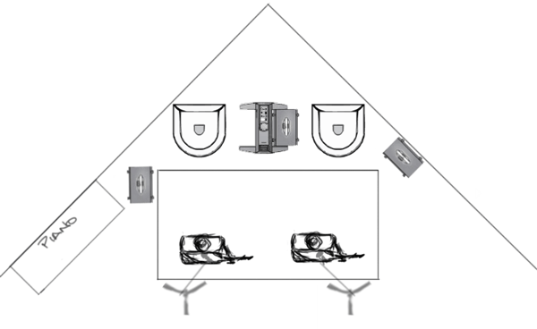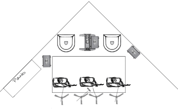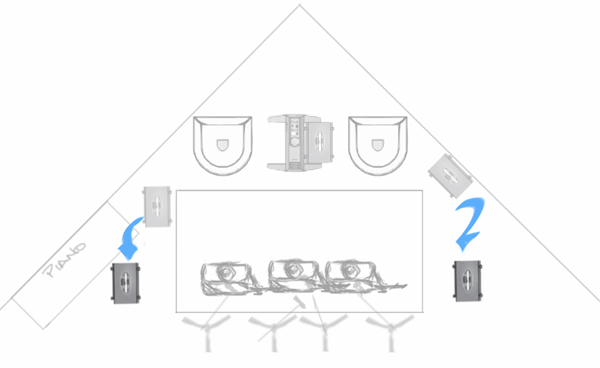 This is pretty close to scale for the distances, so the performers were about 3-4 feet in front of the L1™s. Not a lot of room given the 2500+ square feet we were trying to fill.