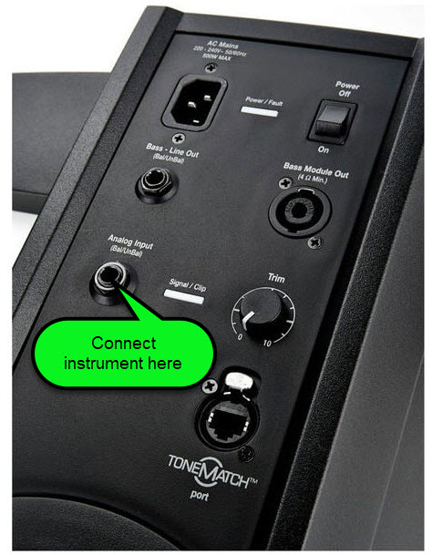 If you find the tone is too bassy, set the ToneMatch switch to Guitar (up position)