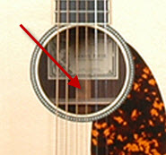Our truss rod is located on the inside of the guitar, where the neck joins the body. You can see it by sticking a small mirror (Like a woman's compact) inside the guitar and looking up under the fingerboard. There is a little hex connector there where the truss rod adjustment key fits.