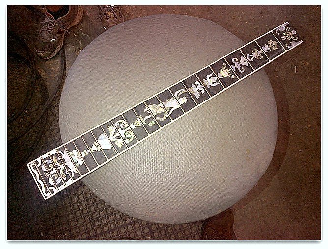 - Inlays: Harp, Flame, or Tree of Life; all in mixed abalone/mother of pearl