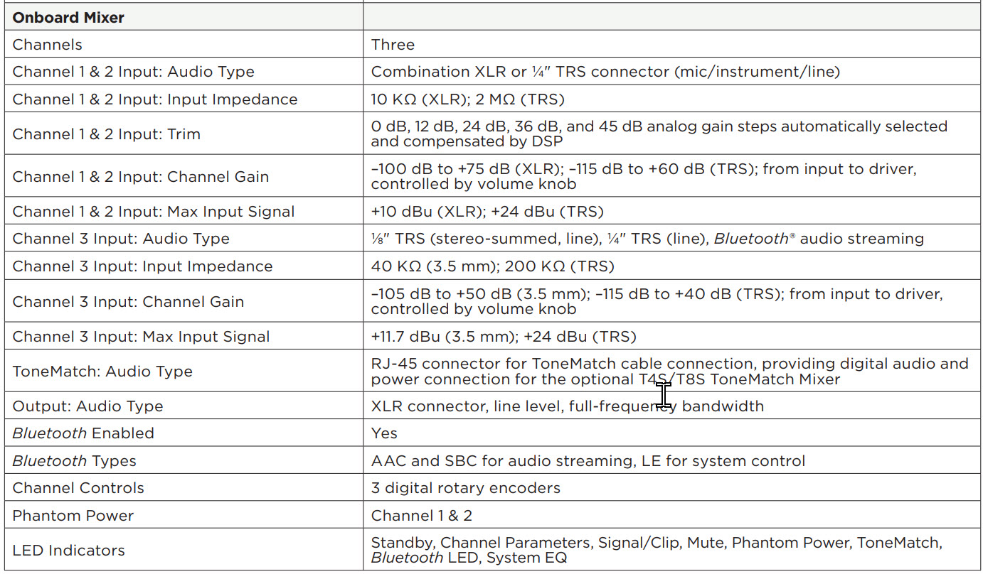 • No ToneMatch switch (not required with a mixer)