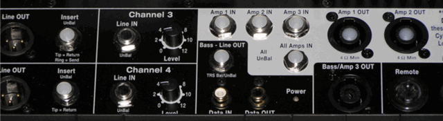 To avoid mishaps at a gig cover or plug the unused inputs on your PS1 Powerstand. This picture shows white nylon caps in the lesser used inputs of a L1 Classic Powerstand. The L1 Model I does not have the inputs in the white area near the top right.