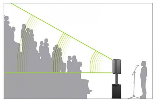 The people in the upper rows may not hear the sound clearly. If you were expecting a full house, this could be a problem - one you could solve with F1 Model 812 Flexible Array Loudspeaker systems because you can direct sound upward.