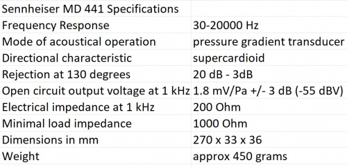 Specifications Sennheiser MD 441 Specifications