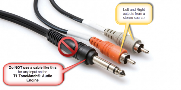 • If your source has RCA outputs, use a standard RCA to 1/8 inch Tip-Ring-Sleeve