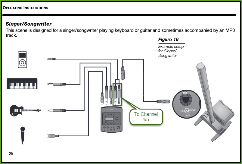 To connect a stereo source to a T1 ToneMatch Audio Engine see: Backing Tracks
