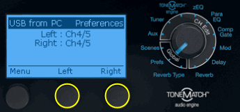 Now the volume of your USB device, relative to the other T1® Channels, is controlled by the Channel 4/5 Vol control.