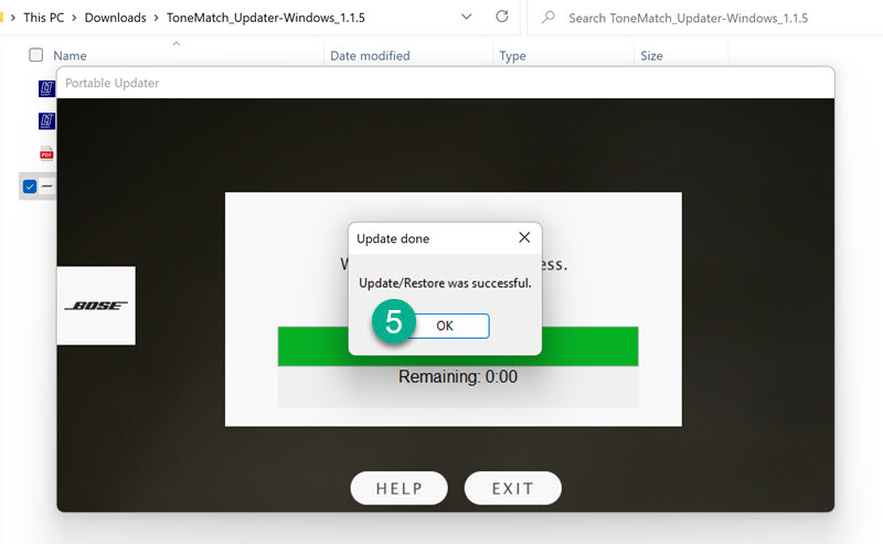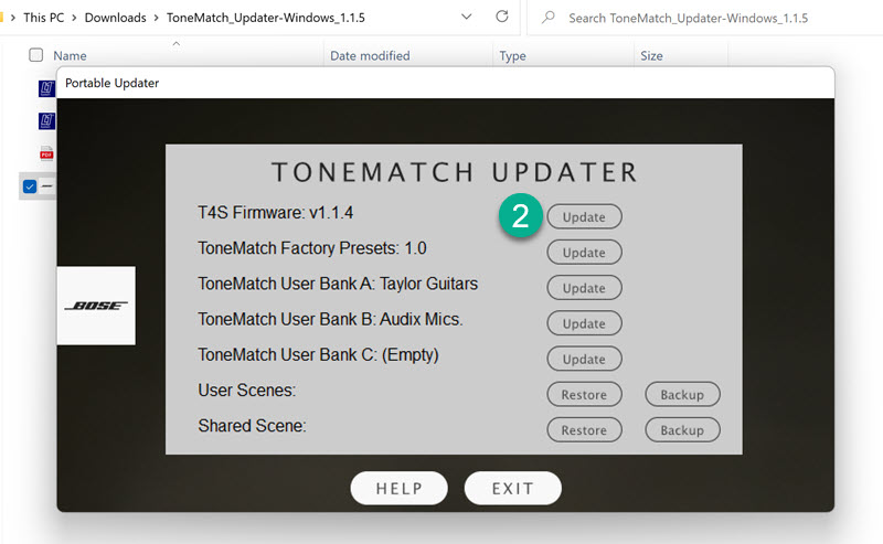 ToneMatch Updater for Windows with firmware version 1.2.3