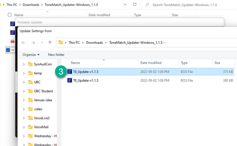 move the *.bos files to the same folder as the ToneMatch Updater. This will make it easier to find the files when using the ToneMatch Updater.