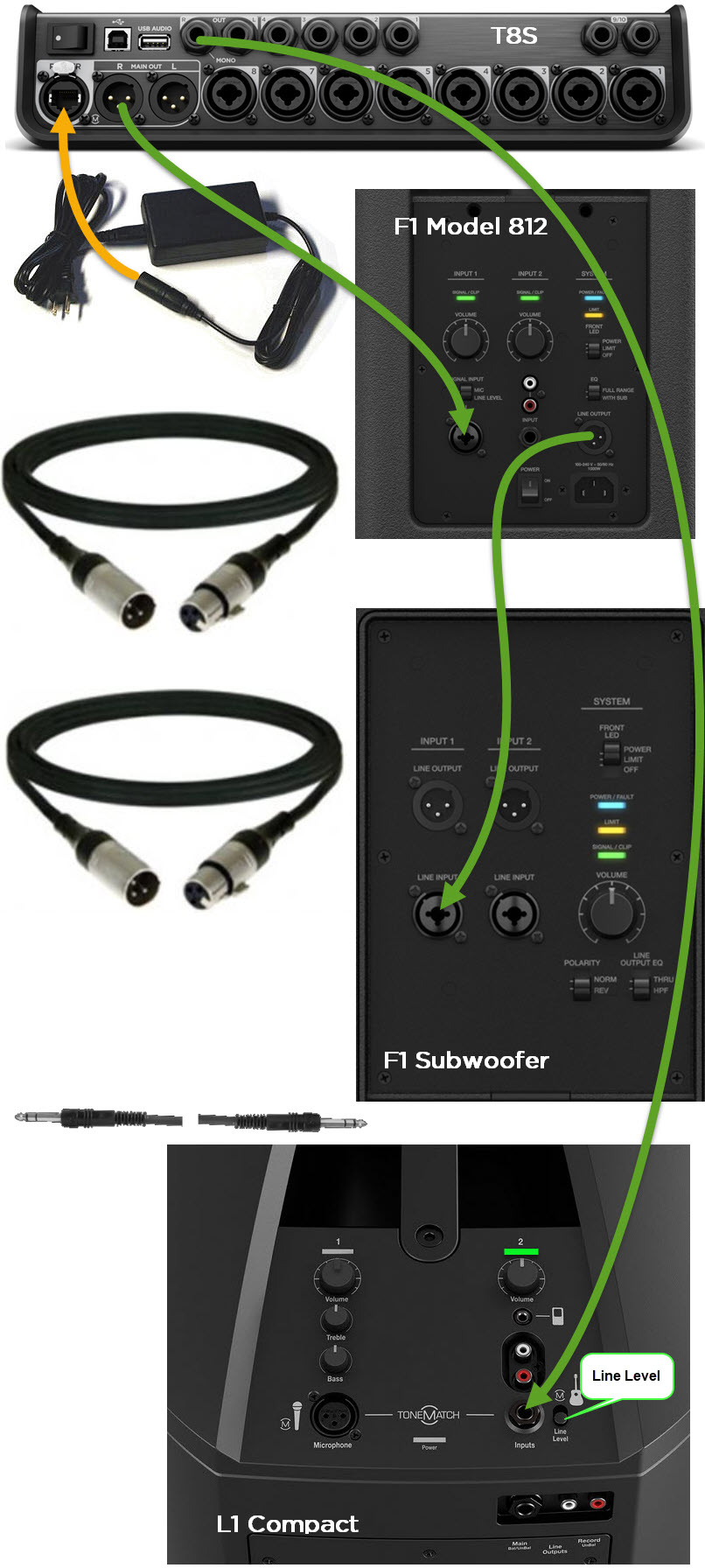 T8S to F1 Model 812 to F1 Subwoofer and L1 Compact