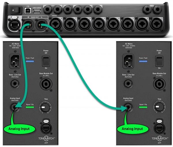 1. Connect the T8S ToneMatch mixer Main Output to the L1 Model II Analog Input