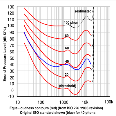 And it gets trickier, as you turn up louder and louder, the equal loudness curves change ... that is the "threshold of hearing" curve looks different from the "threshold of pain" curve.