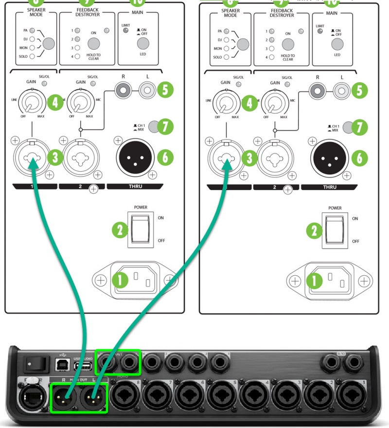 Here is an excerpt from the Mackie SRM 350 Owners Manual.