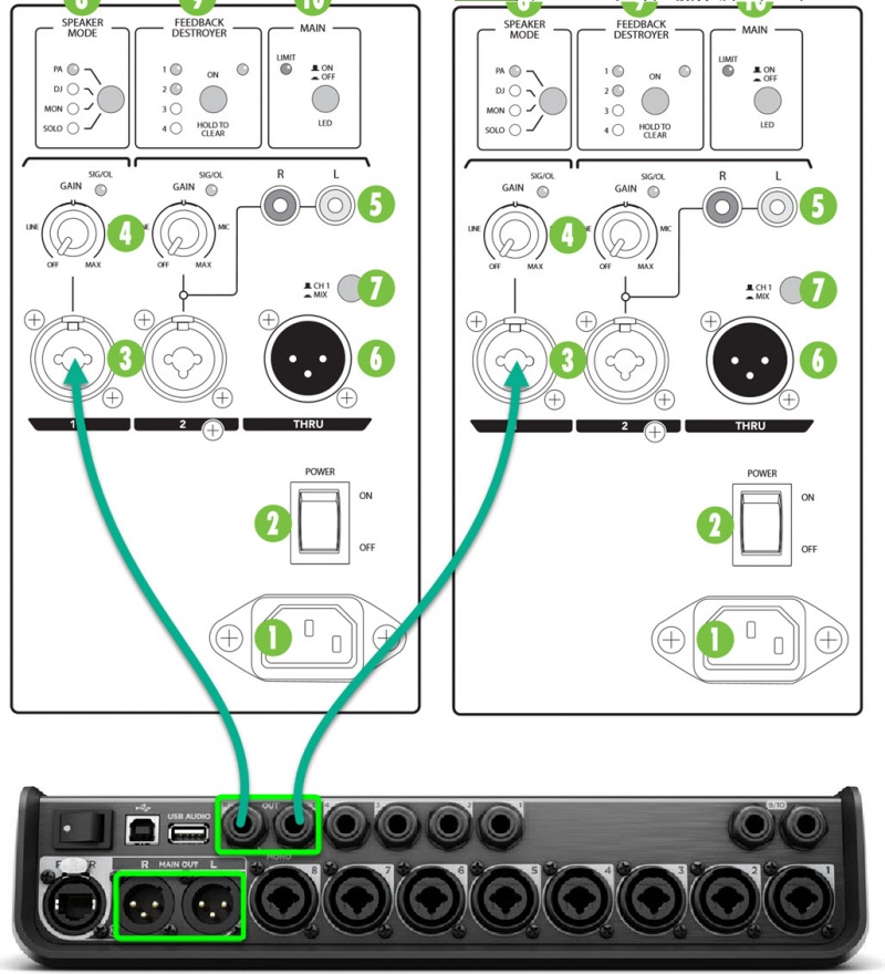 Connect a ToneMatch mixer to a Mackie SRM series loudspeaker