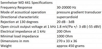 [[File:Sennheiser MD 441 Specifications.jpg|400px]] | |||