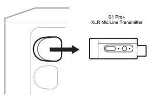 - Connect the XLR Wireless transmitter to S1 Pro+ 1 Line Out (XLR connection)