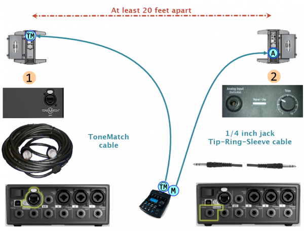 Connect the first system with the ToneMatch cable that came with the T1®.