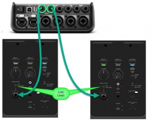 If you use an unbalanced cable (Tip-Sleeve) between the first and second T1 ToneMatch Audio Engine, you will have a lower signal to noise ratio than using a balanced cable (Tip-Ring-Sleeve). This means you will have more noise, and because you will have to turn up the volume on the second T1 ToneMatch Audio Engine you will be amplifying the noise.